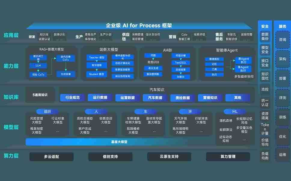端到端的一站式AI工作空间深度融合了从企业战略规划到日常经营的全流程业务板块,,,定向解决车企内部领域多、、部门多、、、、链条长、、、场景碎片化等难题,,支持车企快速构建以AI为核心的生产力写作体系,,,实现任务执行与AI能力的无缝集成与交互